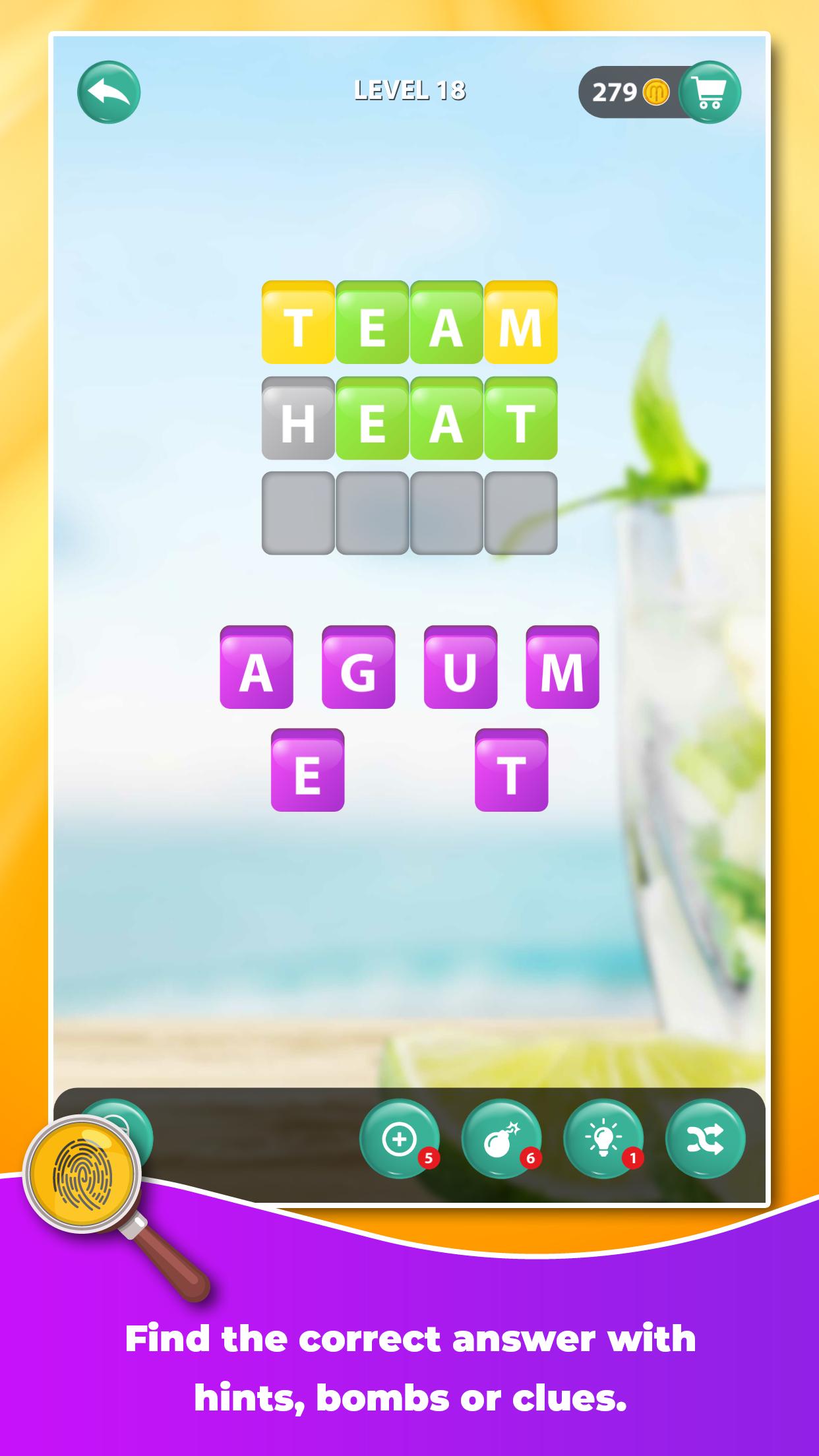 Você também pode usar opções de dica de letra, bomba ou pista para encontrar a palavra certa.
